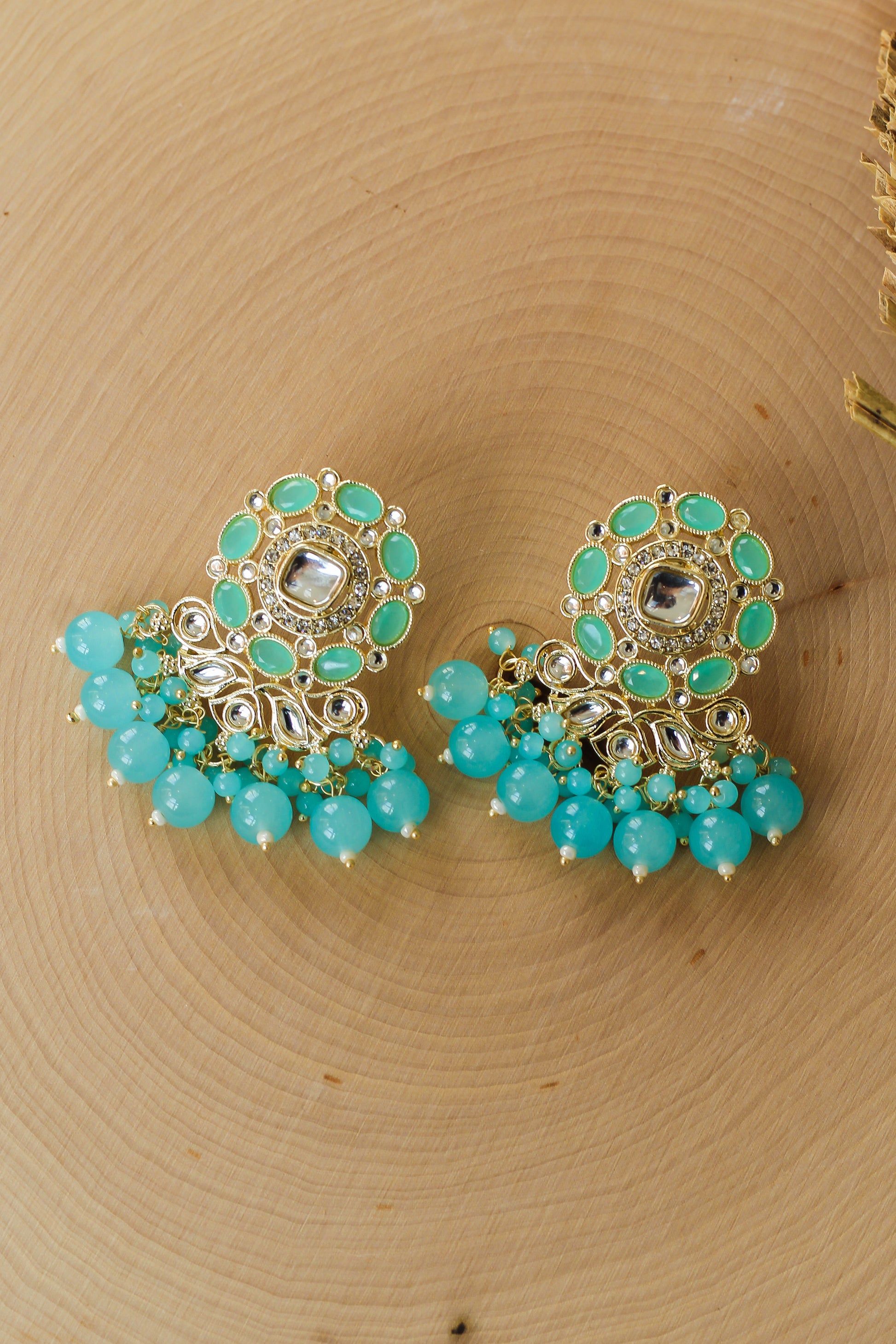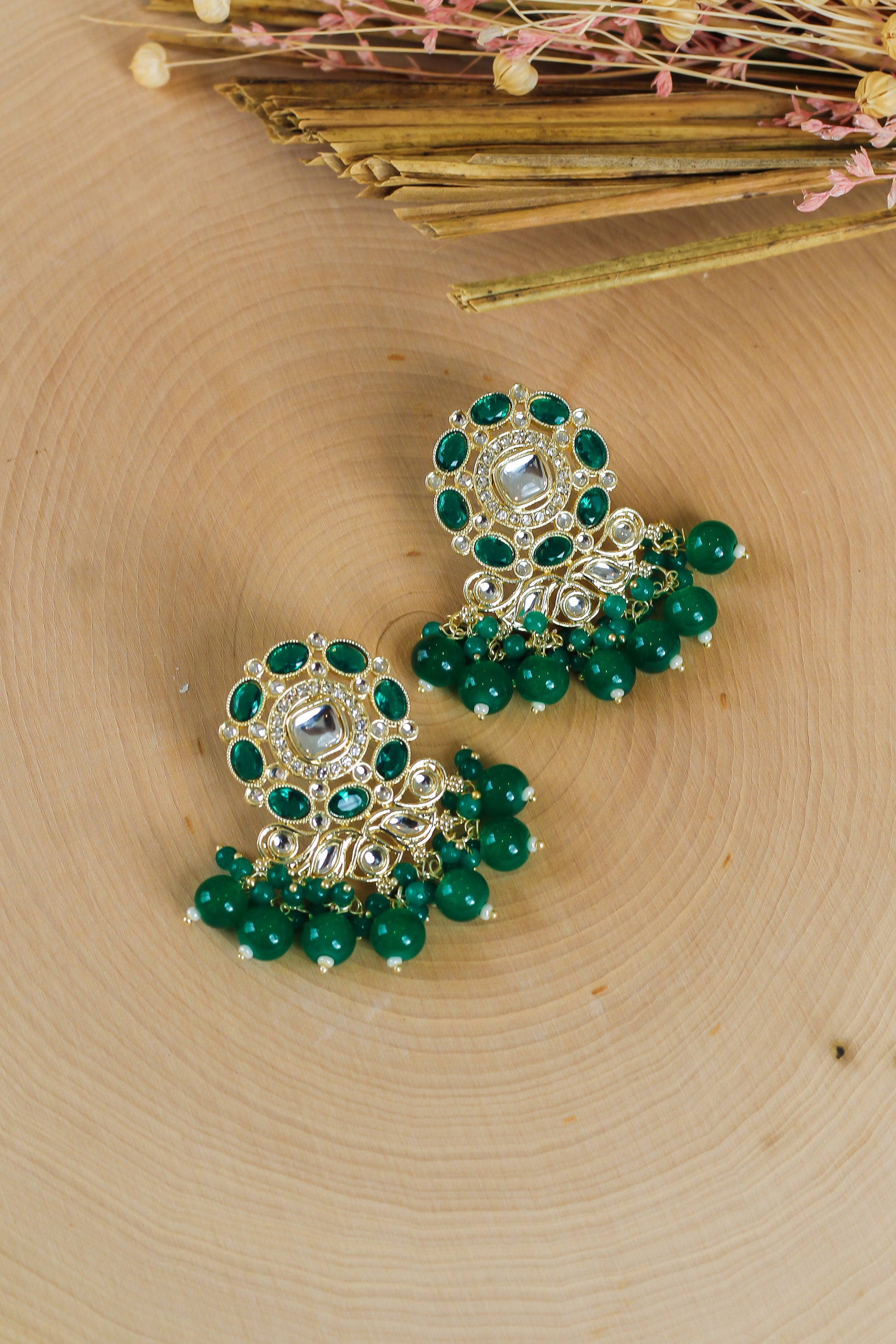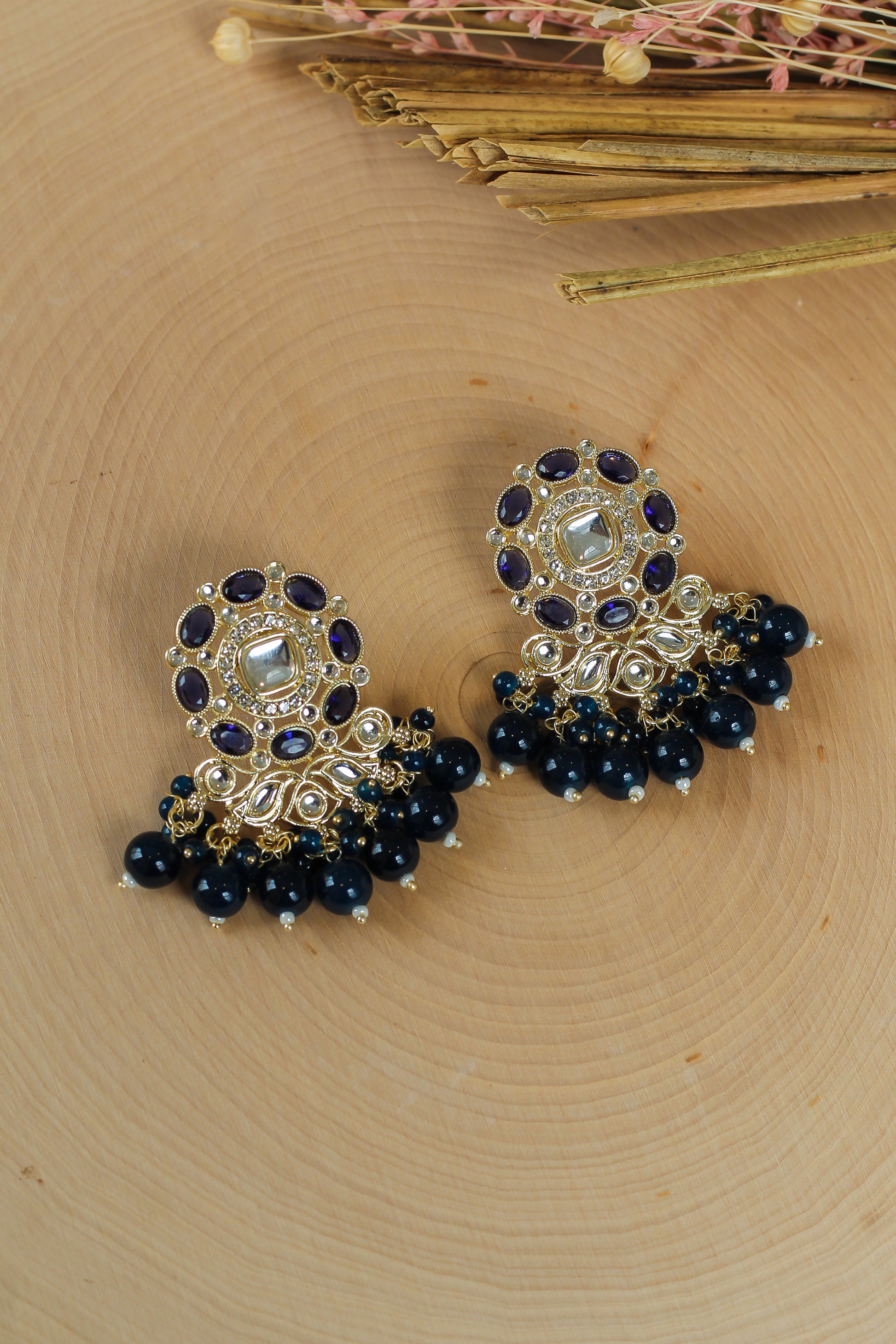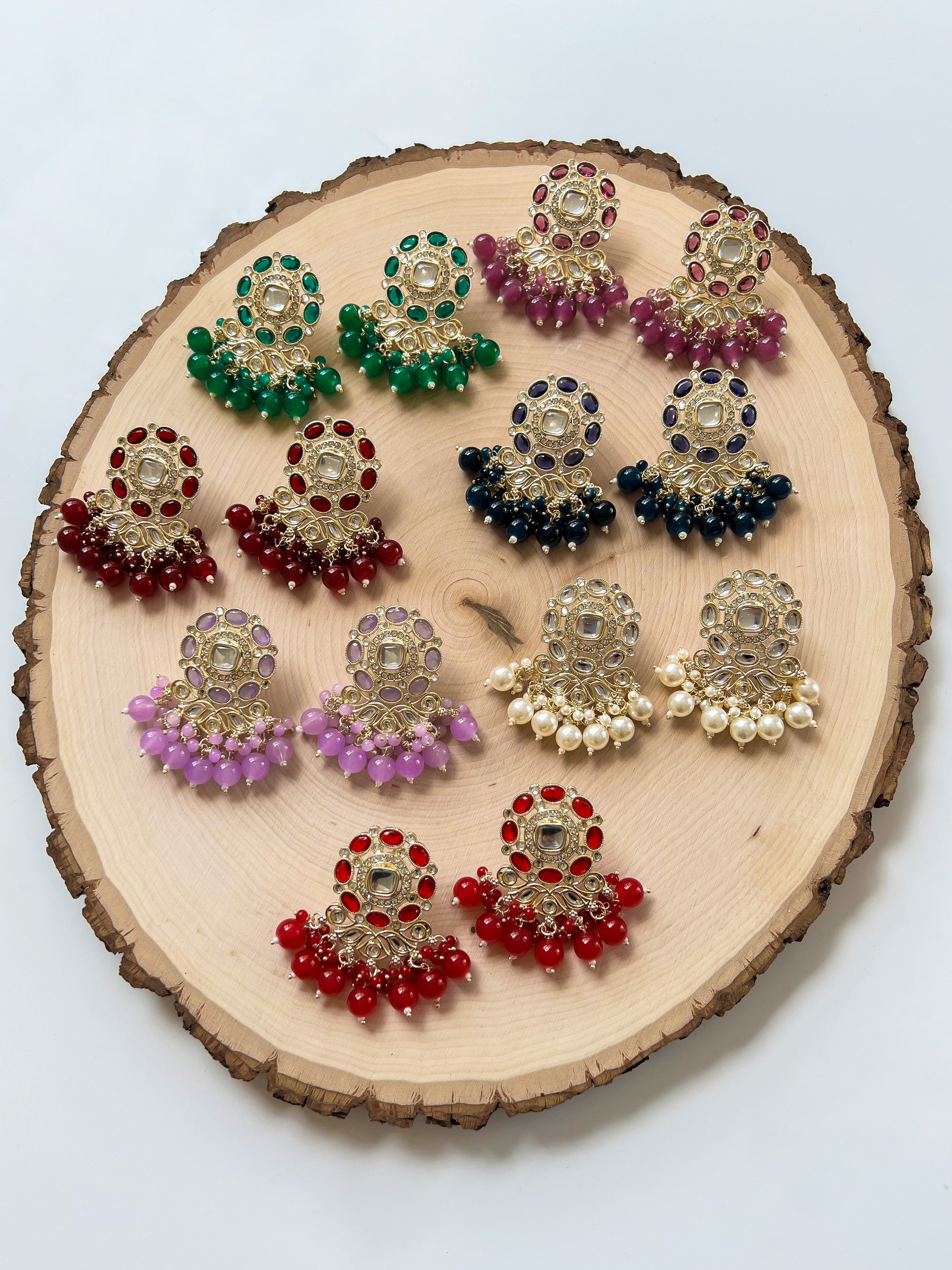 Make a glamourous statement with our ADA earrings, crafted with colorful dabi kundan and shimmering rhinestones. Perfect for any special occasion.
