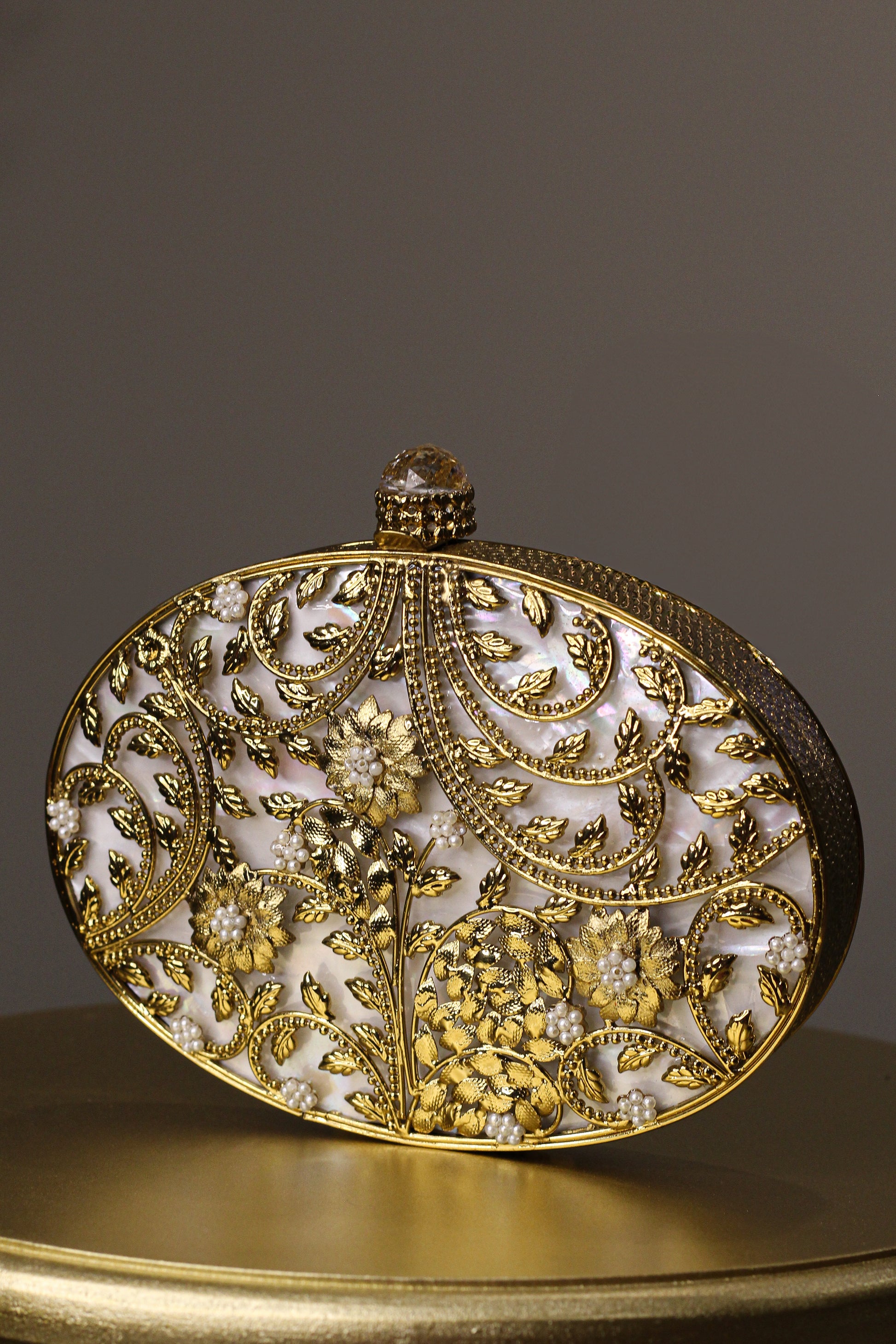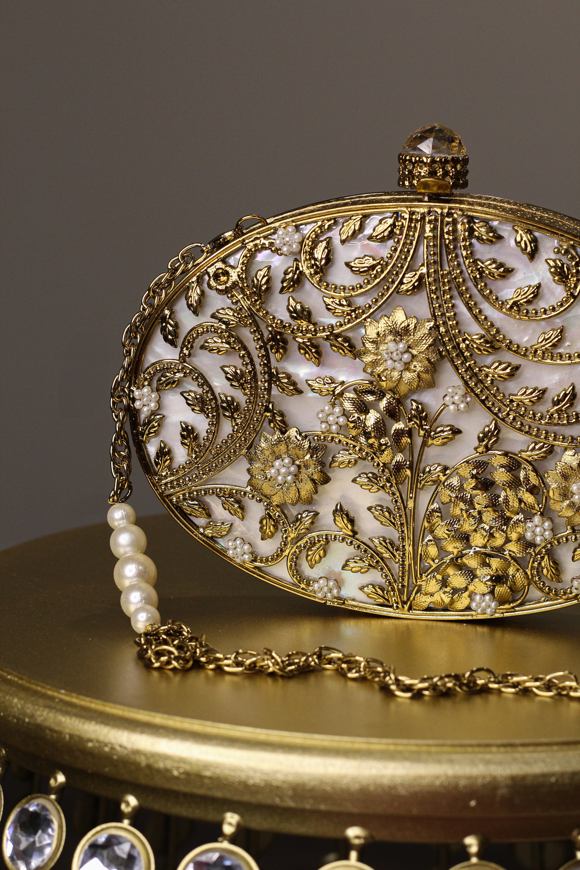 Expertly crafted from mother of pearl, the FARIHA clutch exudes elegance and sophistication. The intricate design and durable material make it a timeless accessory for any occasion. Elevate your style with this luxurious addition to your wardrobe.