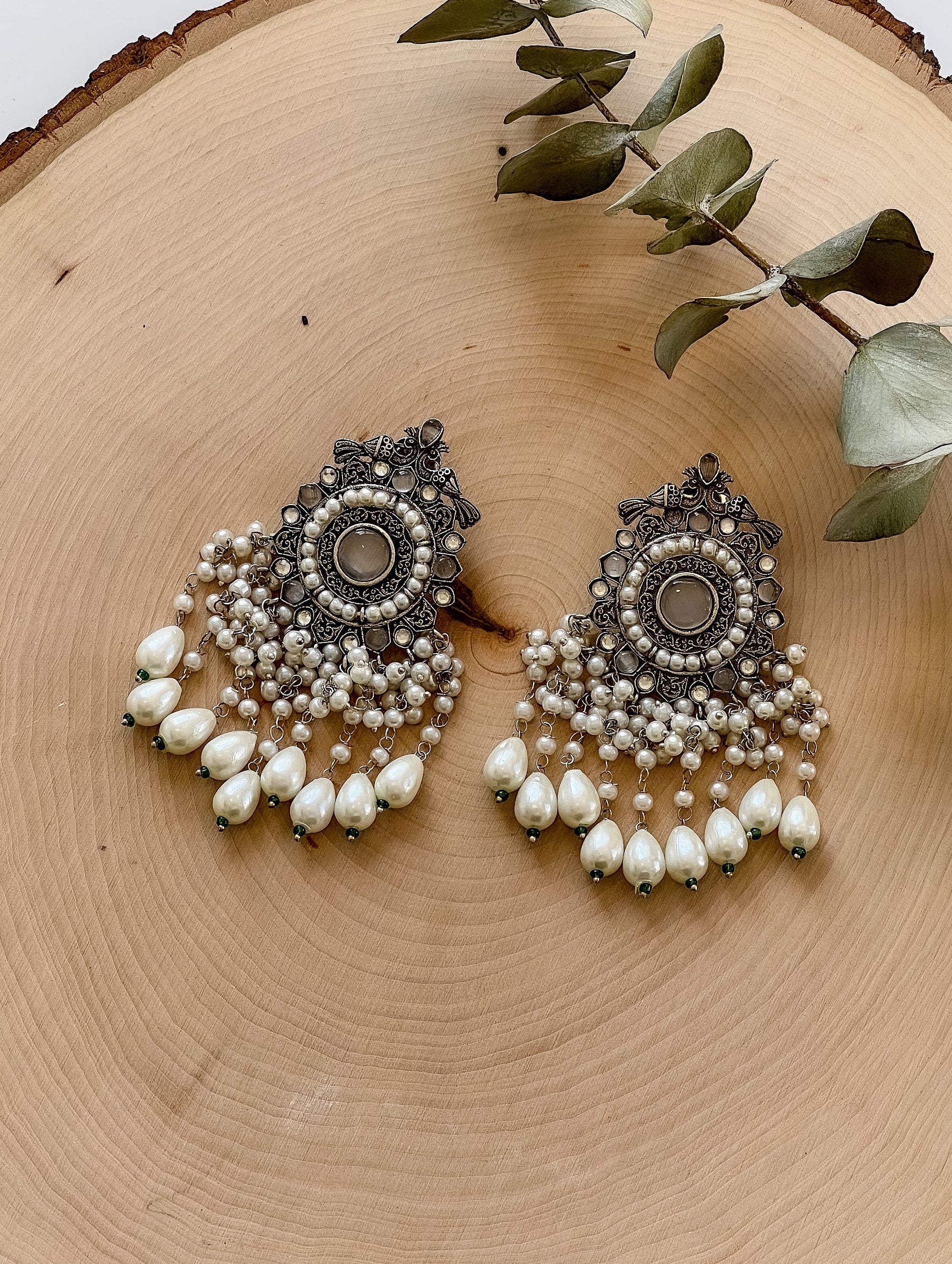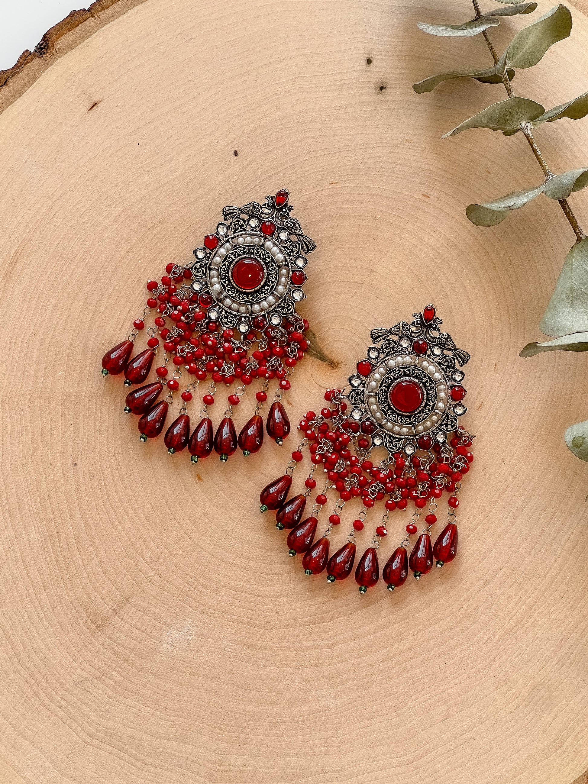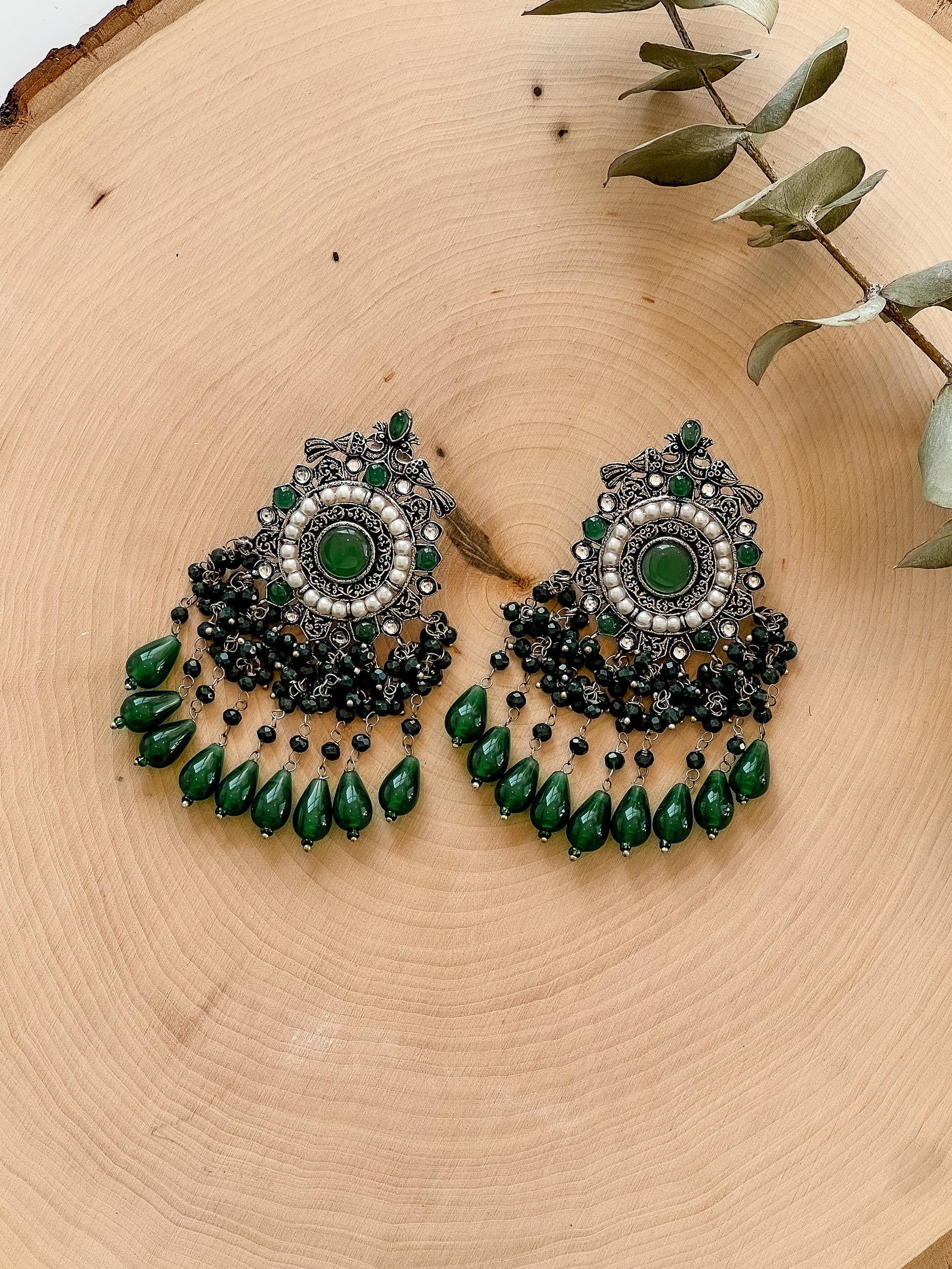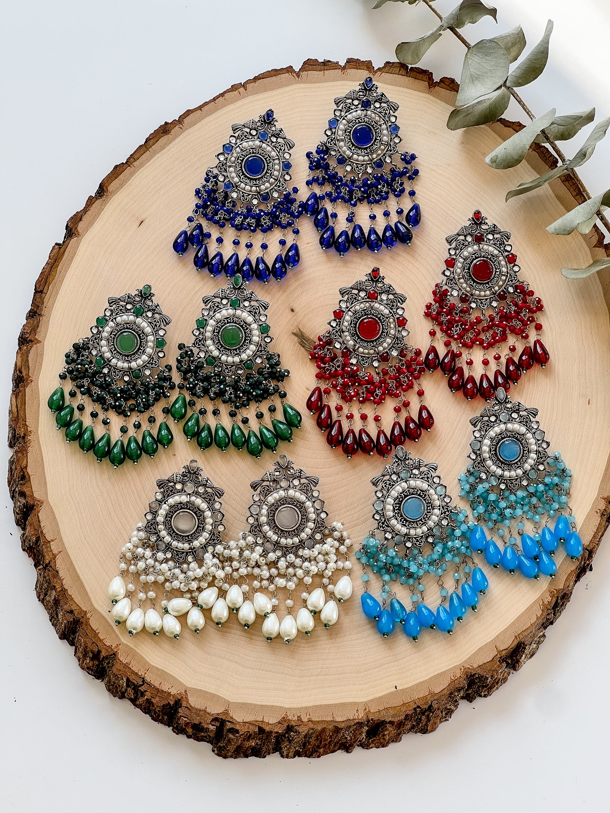 Experience effortless style our new oxidized earrings in “HUDA”. With a uniquely vintage design and a statement-making look, these earrings will make you feel extraordinary every time you wear them!