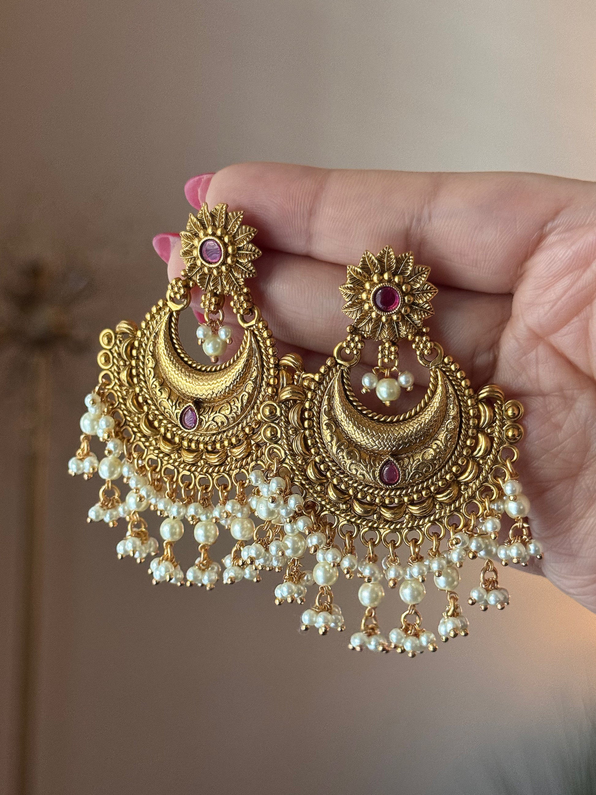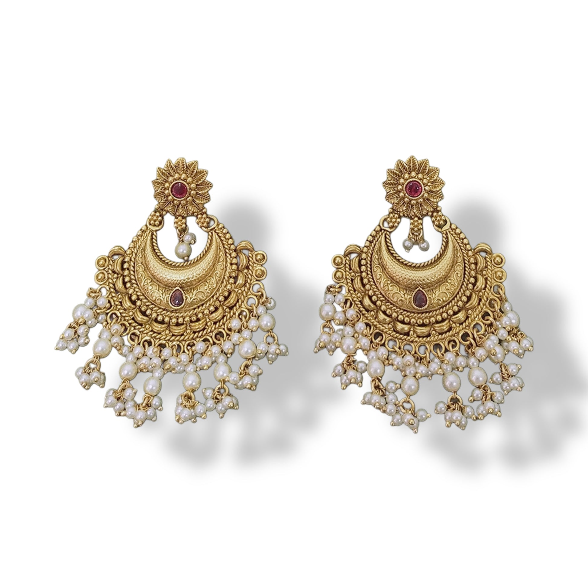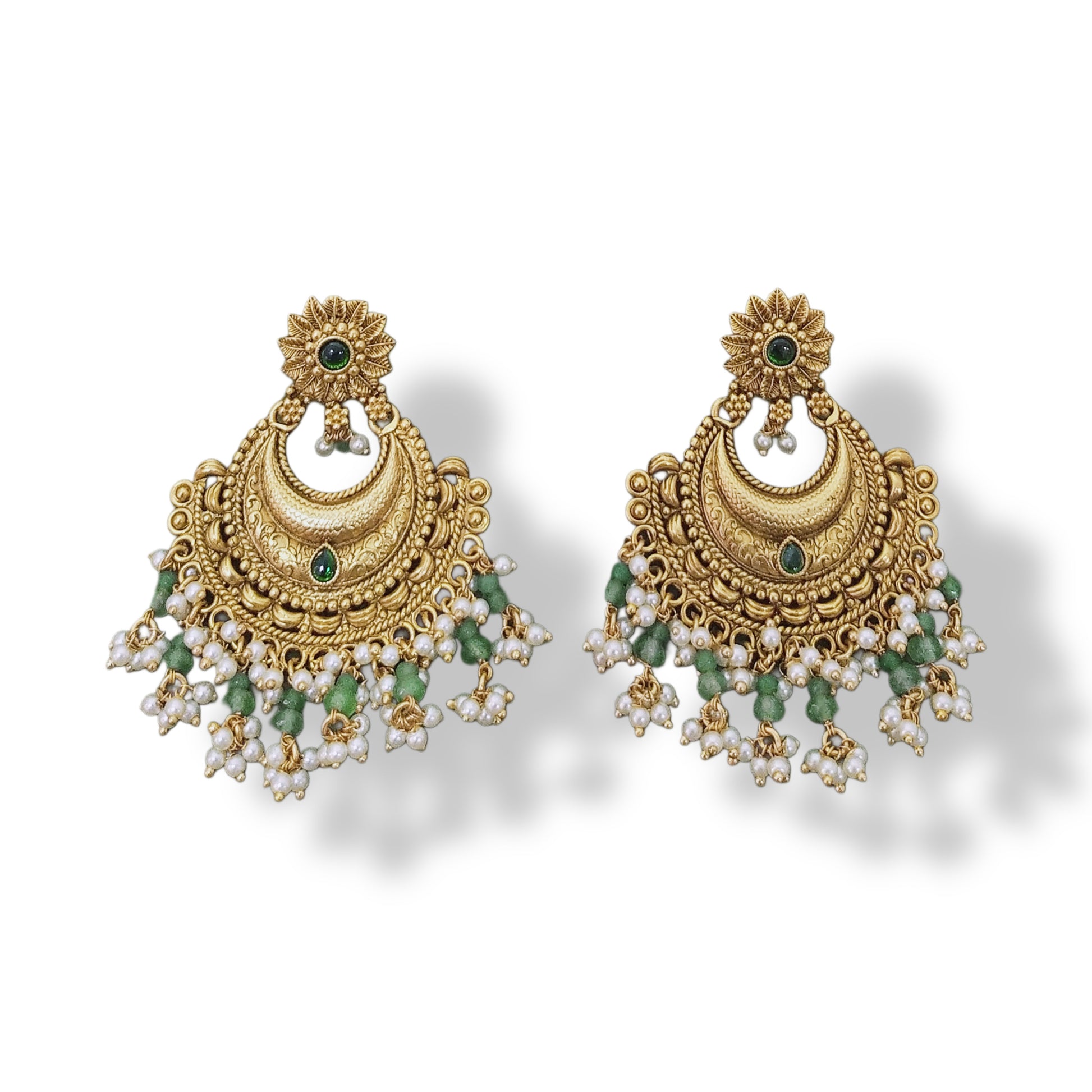 Introducing IRSA : These antique chandbalis exude timeless elegance with their vintage design. Made with intricate craftsmanship, these earrings are a perfect combination of traditional and modern fashion. Crafted to perfection, these chandbalis are a must-have for any jewelry collection.