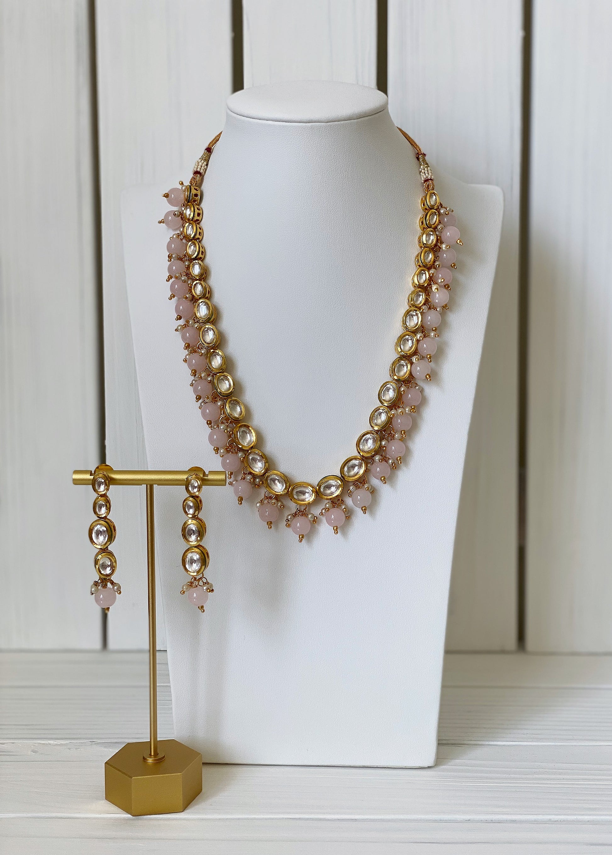 LIGHTWEIGHT KUNDAN NECKLACE AND LAYERED EARRINGS SET