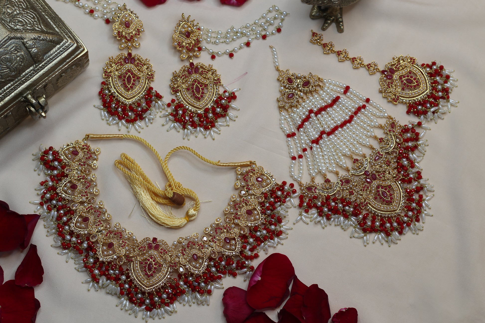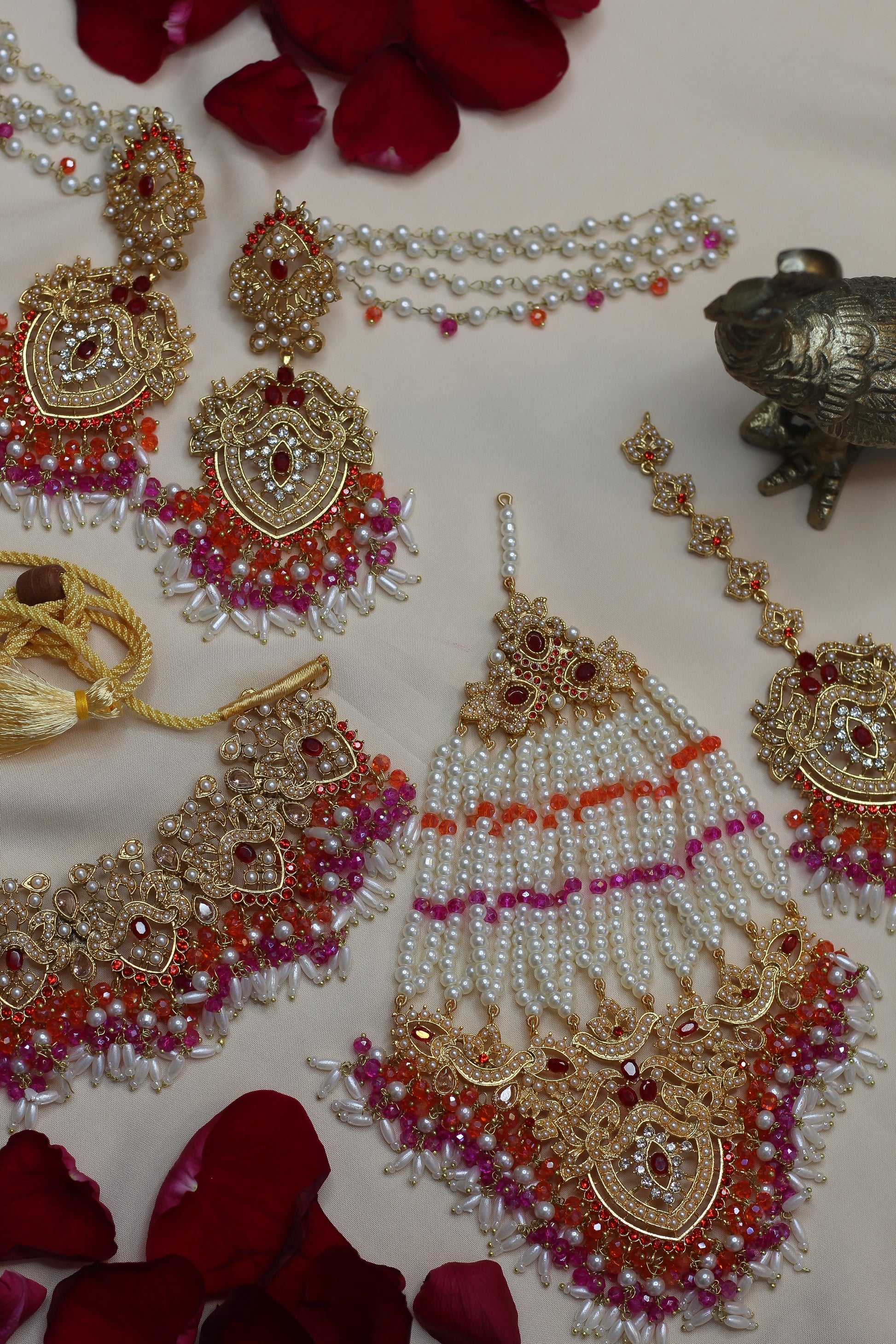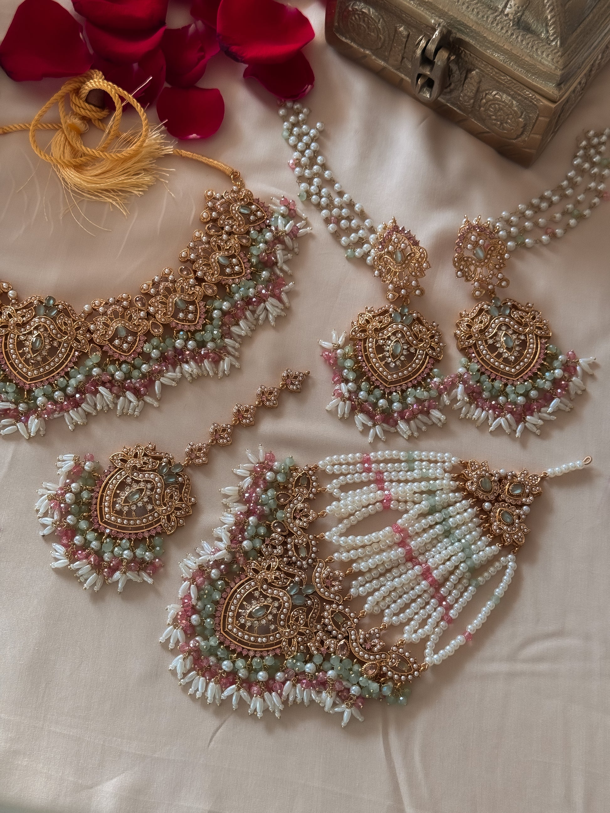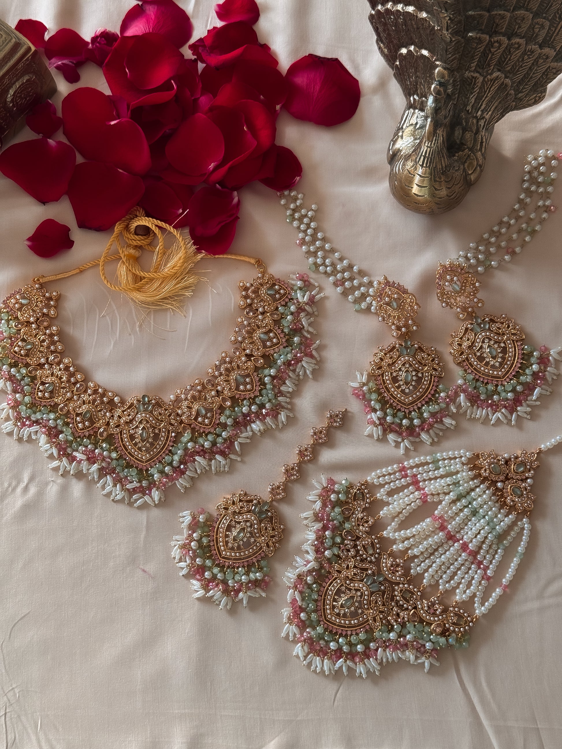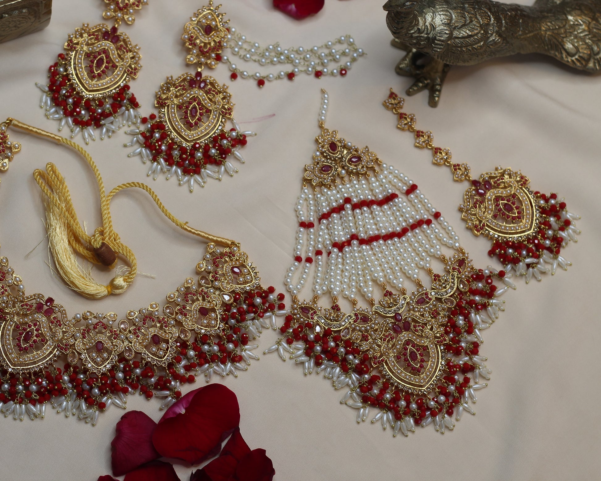 Introducing SADIA : The perfect bridal set that combines trendiness with timeless elegance. With its affordable price, you can have the classic look you've always dreamed of without breaking the bank. Trust in SADIA to make you look stunning on your special day.