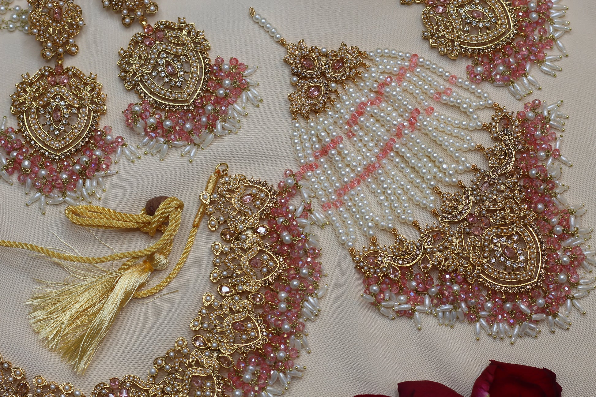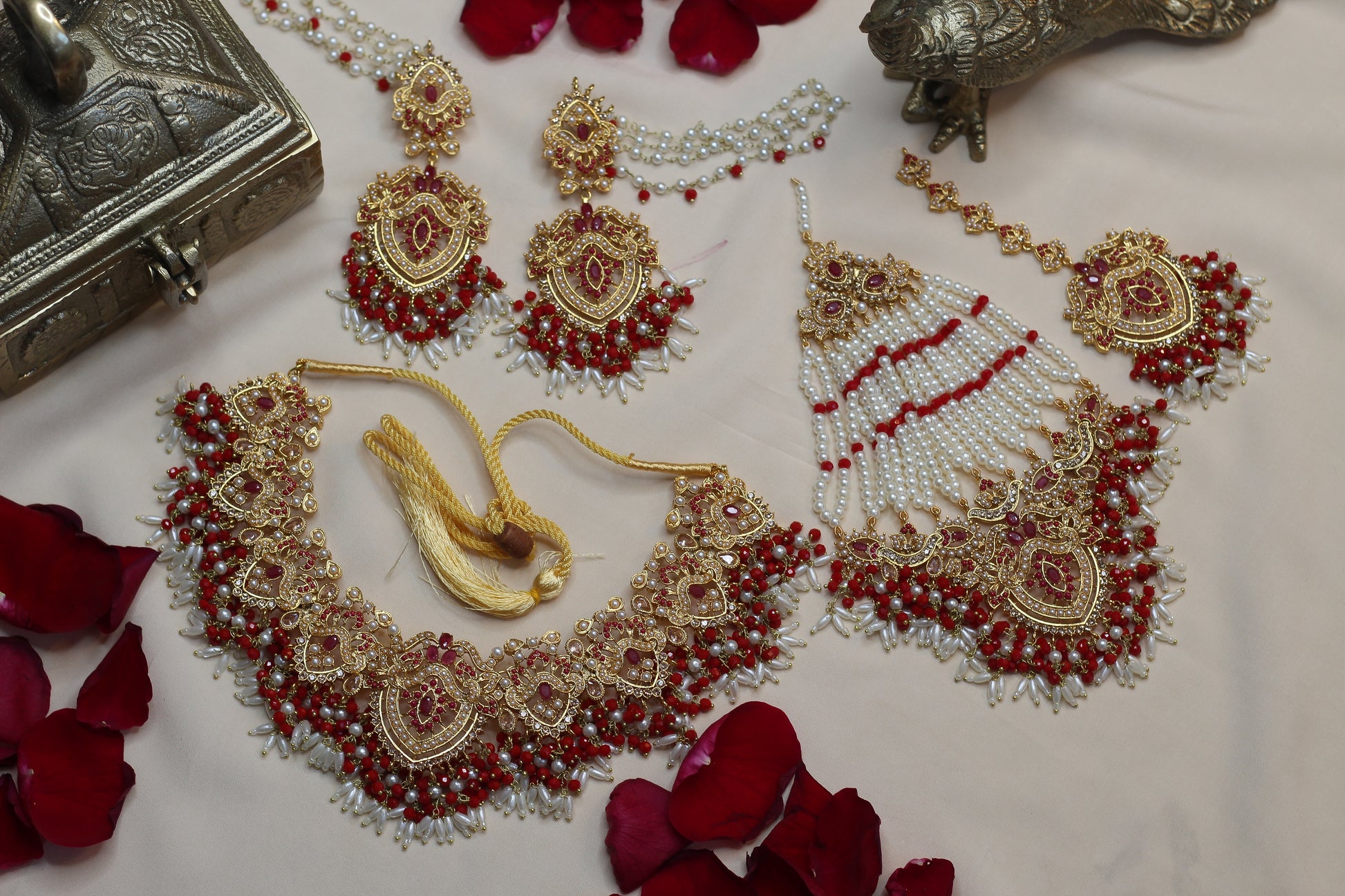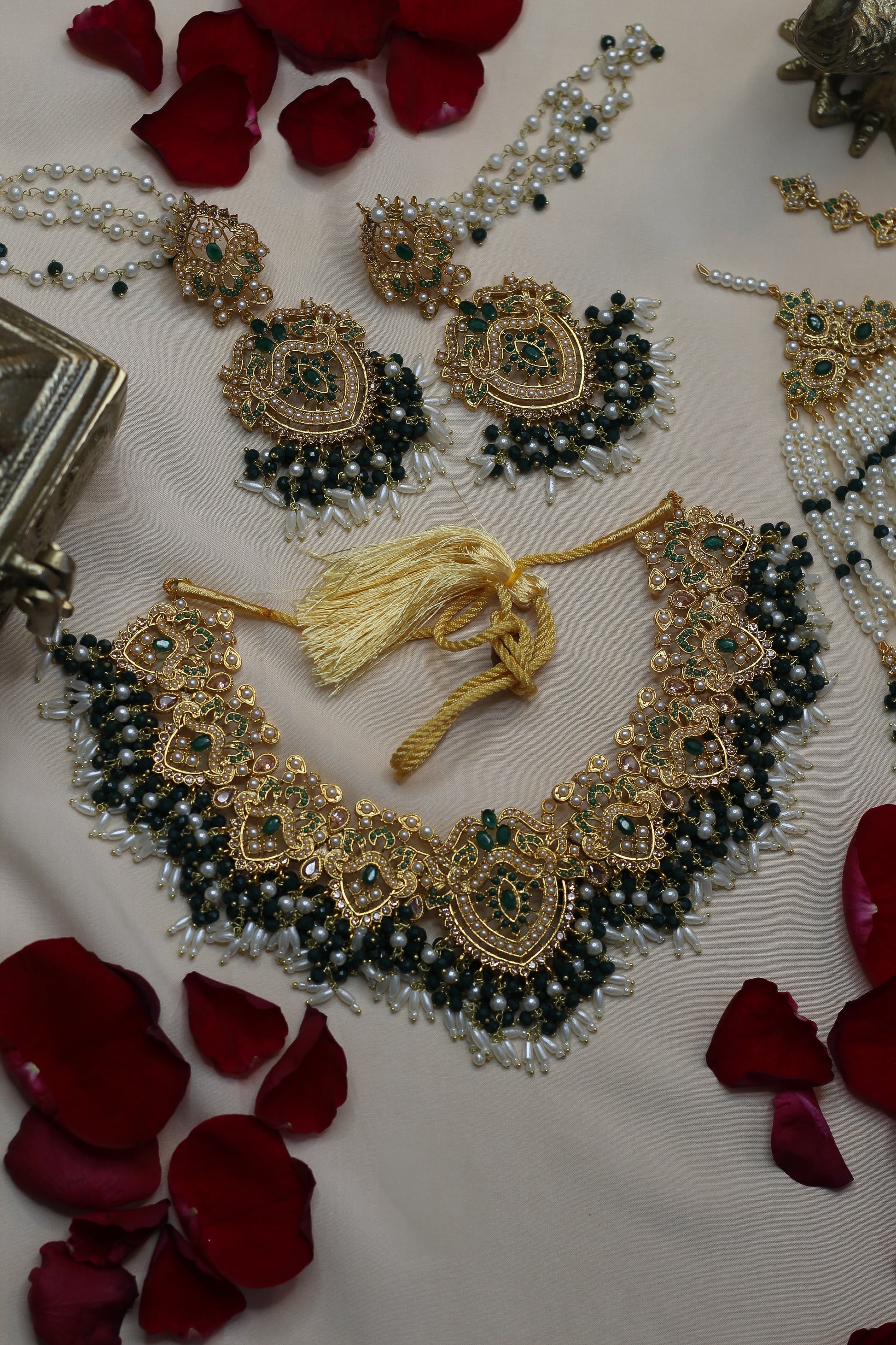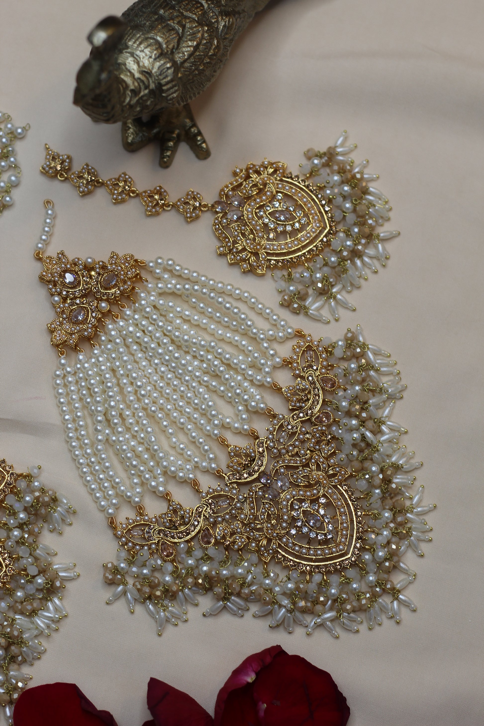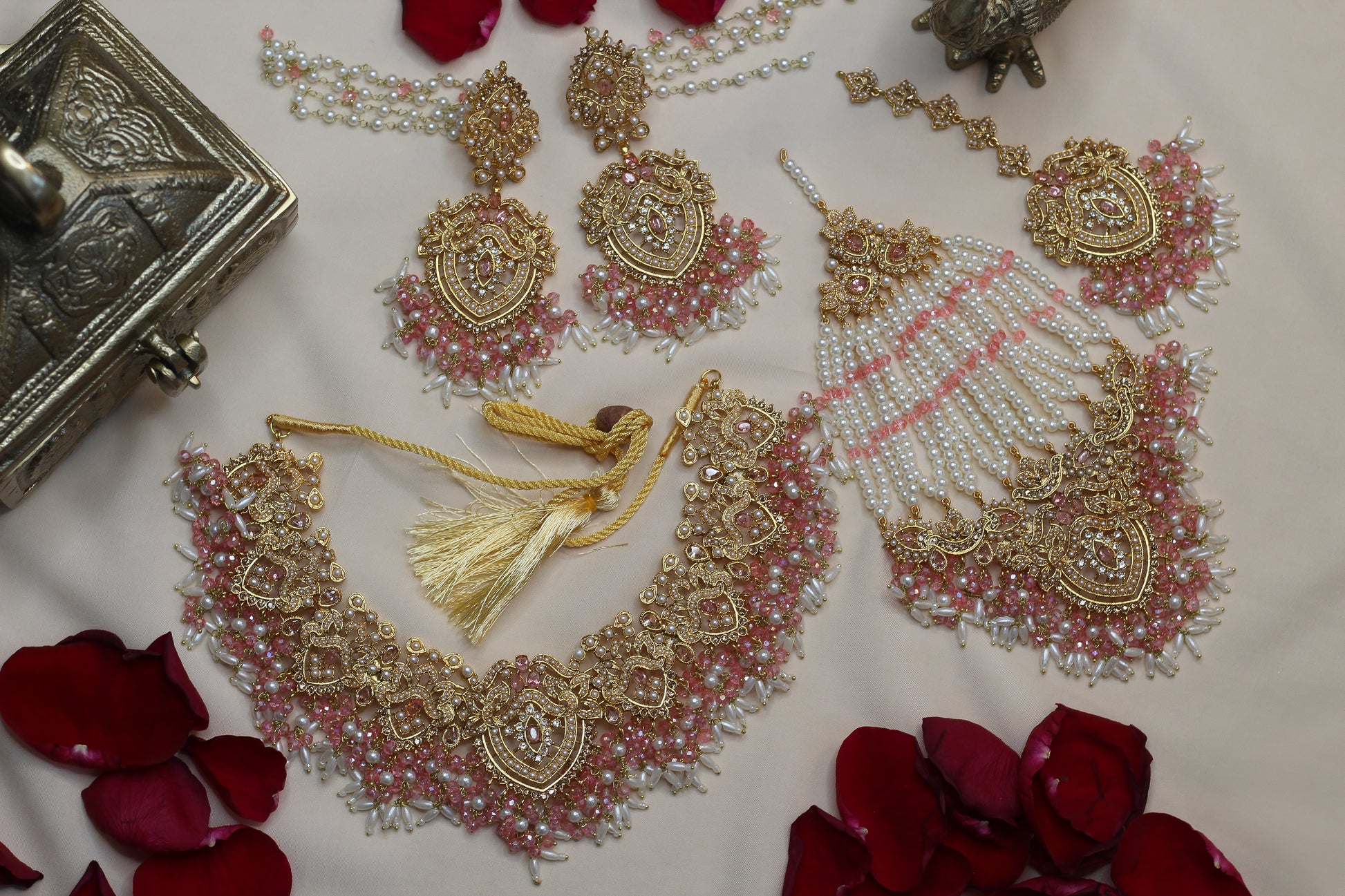 Introducing SADIA : The perfect bridal set that combines trendiness with timeless elegance. With its affordable price, you can have the classic look you've always dreamed of without breaking the bank. Trust in SADIA to make you look stunning on your special day.