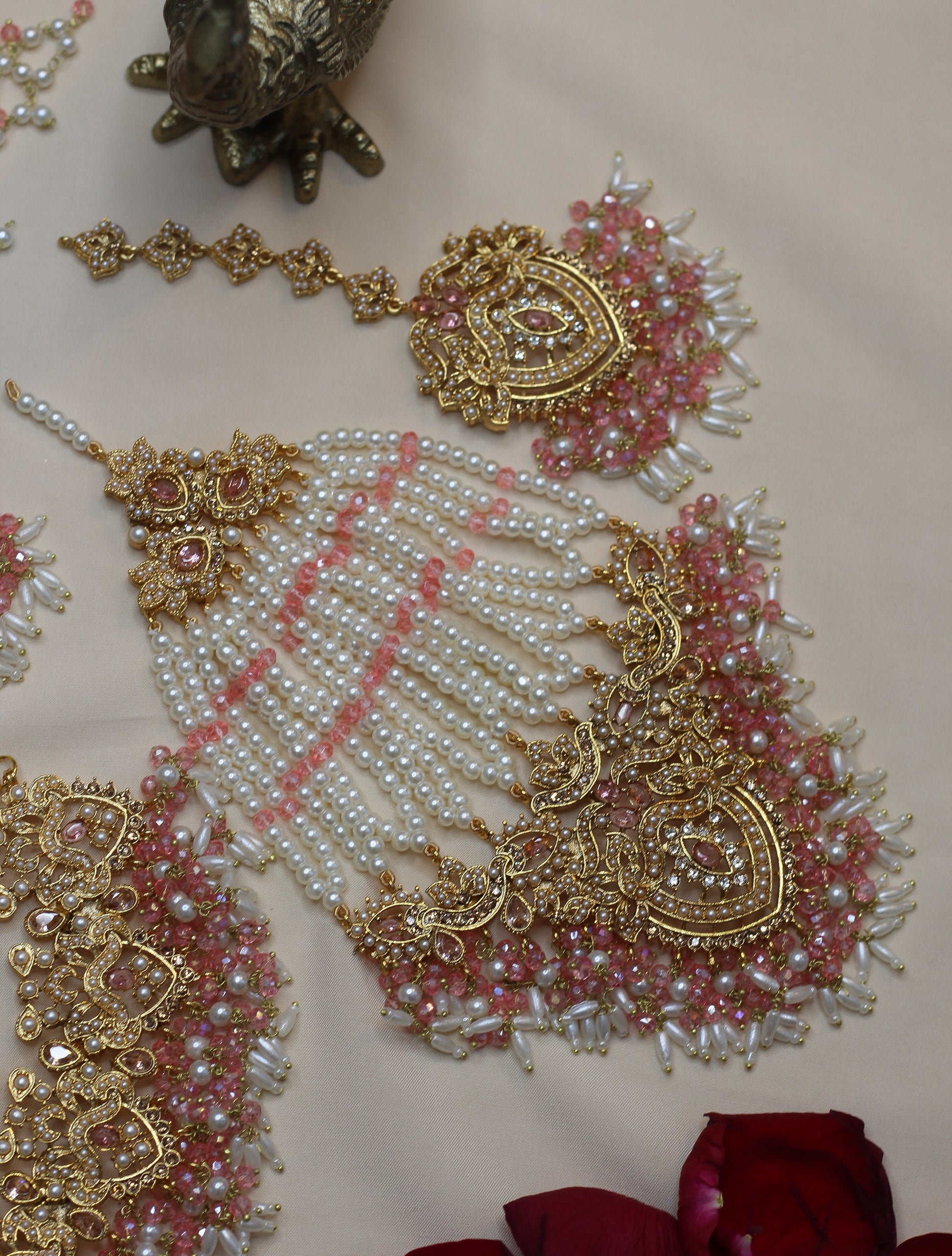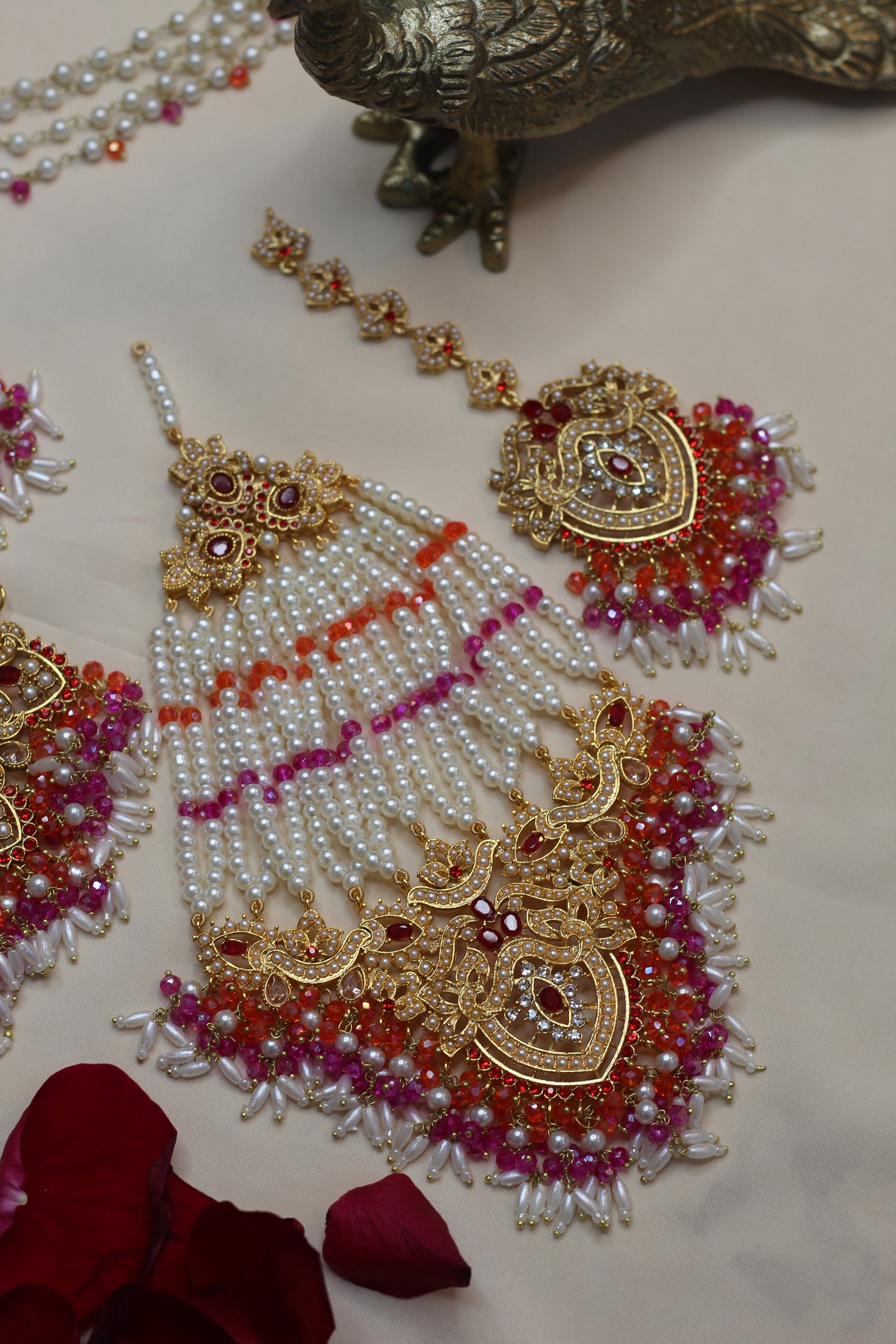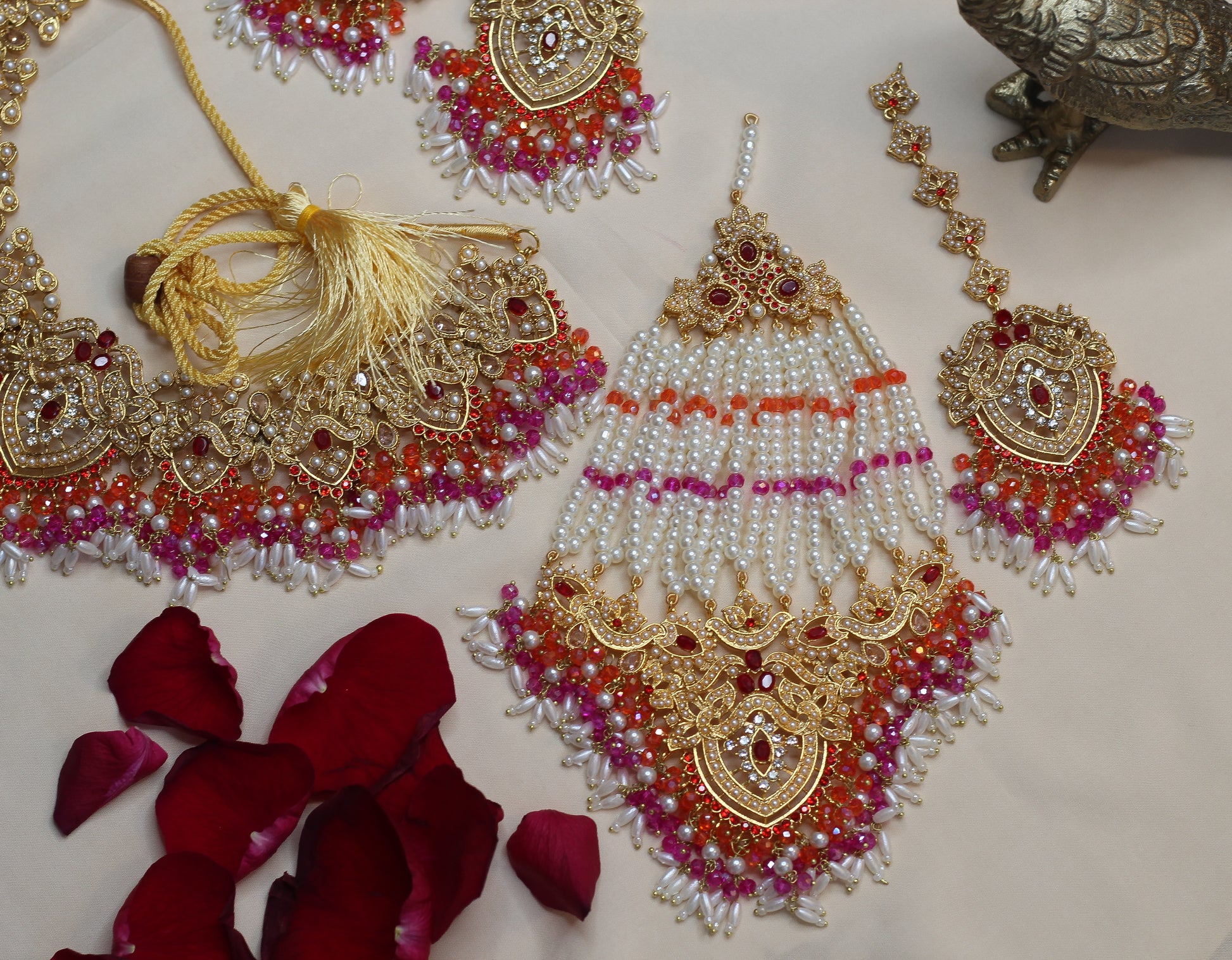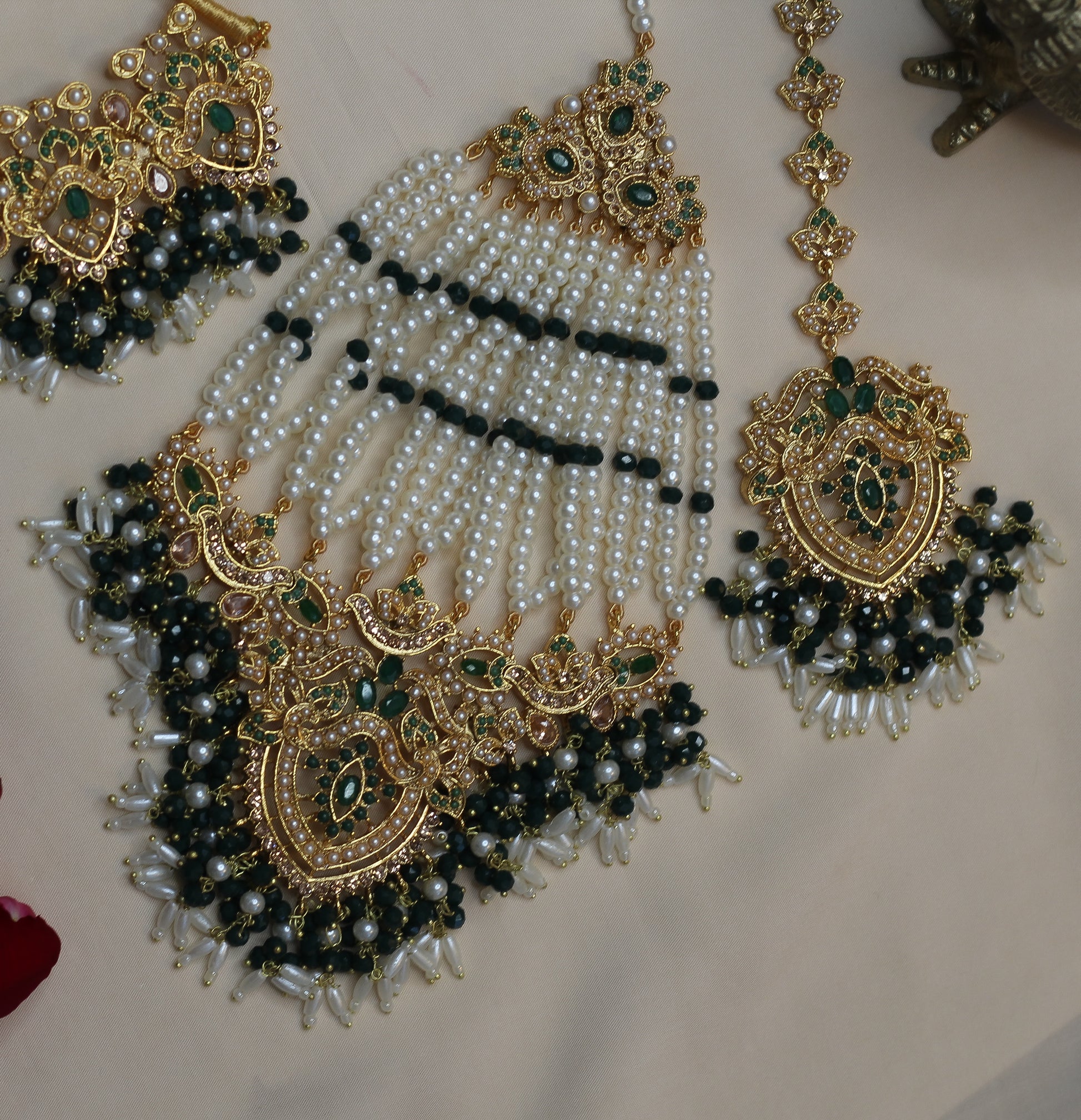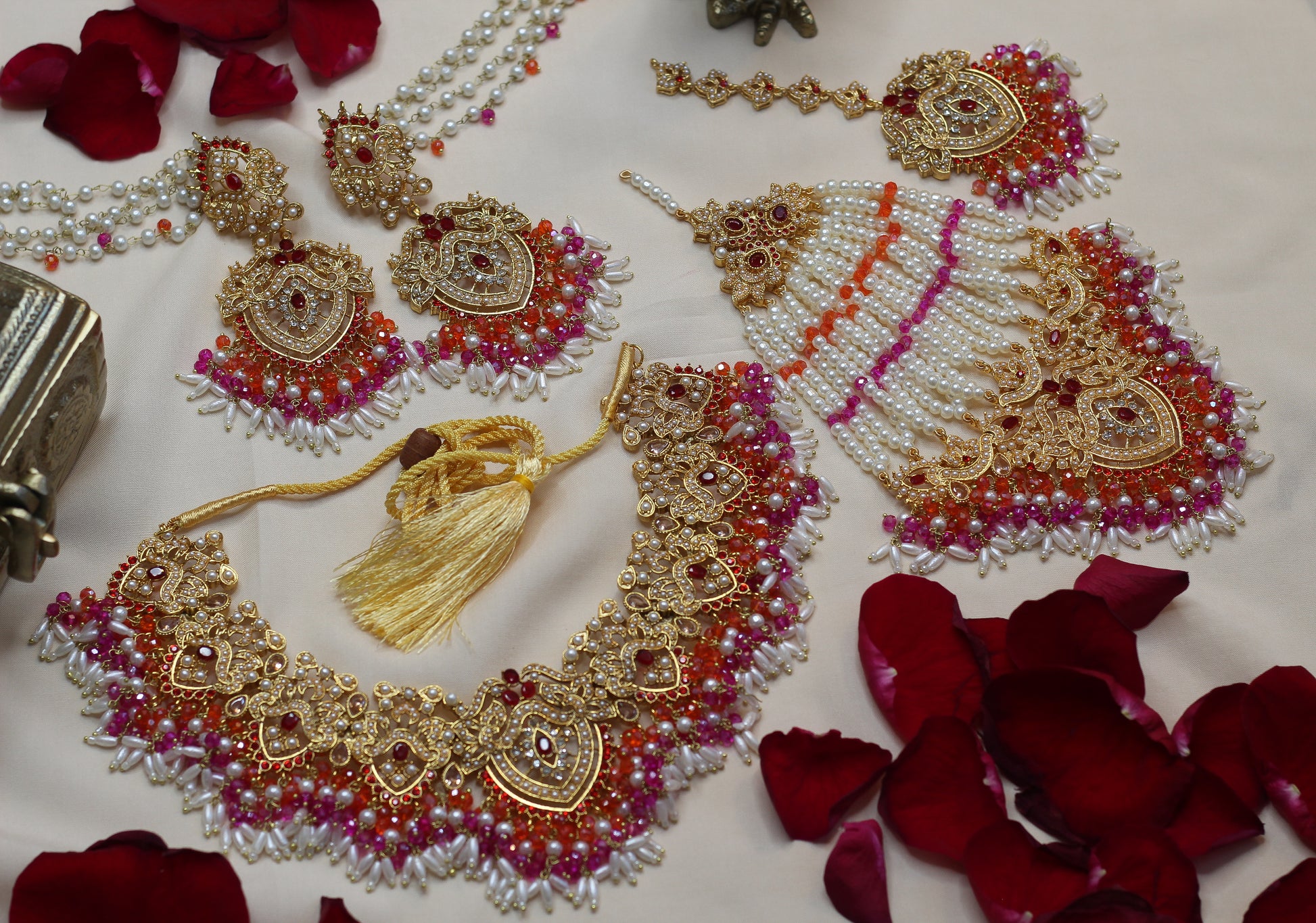 Introducing SADIA : The perfect bridal set that combines trendiness with timeless elegance. With its affordable price, you can have the classic look you've always dreamed of without breaking the bank. Trust in SADIA to make you look stunning on your special day.
