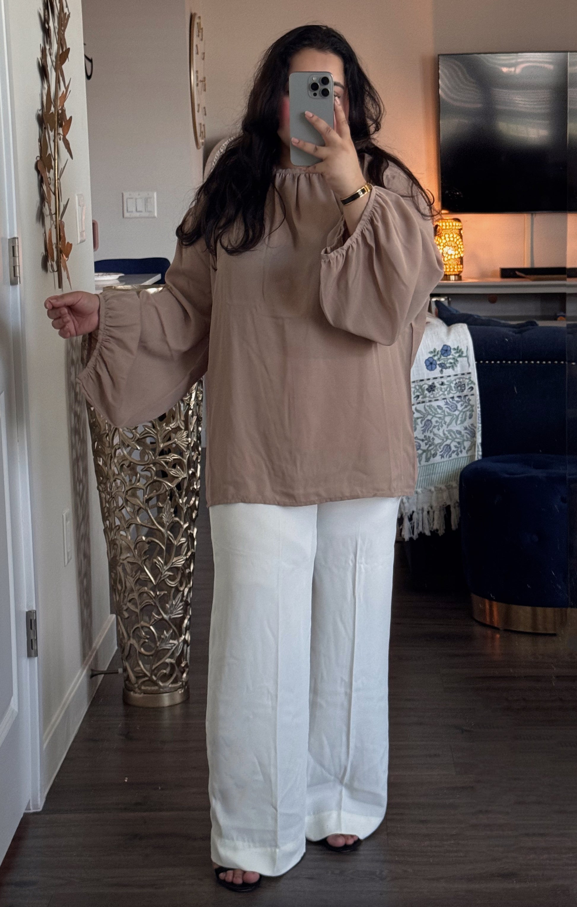 Simple, soft, and endlessly versatile — our Co-Ord Set is the definition of laid-back. The flowy, lightweight top features a gathered neckline and voluminous bell sleeves, adding a relaxed yet graceful silhouette. Paired with crisp white wide-leg trousers, this set brings a clean, modern edge to everyday comfort. Perfect for warm weather days, casual meetups, or minimalist styling lovers.