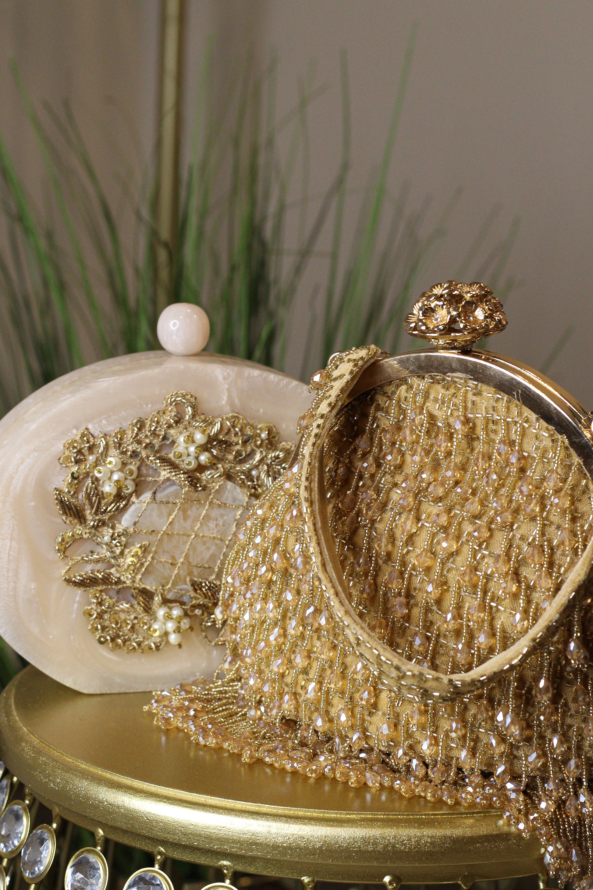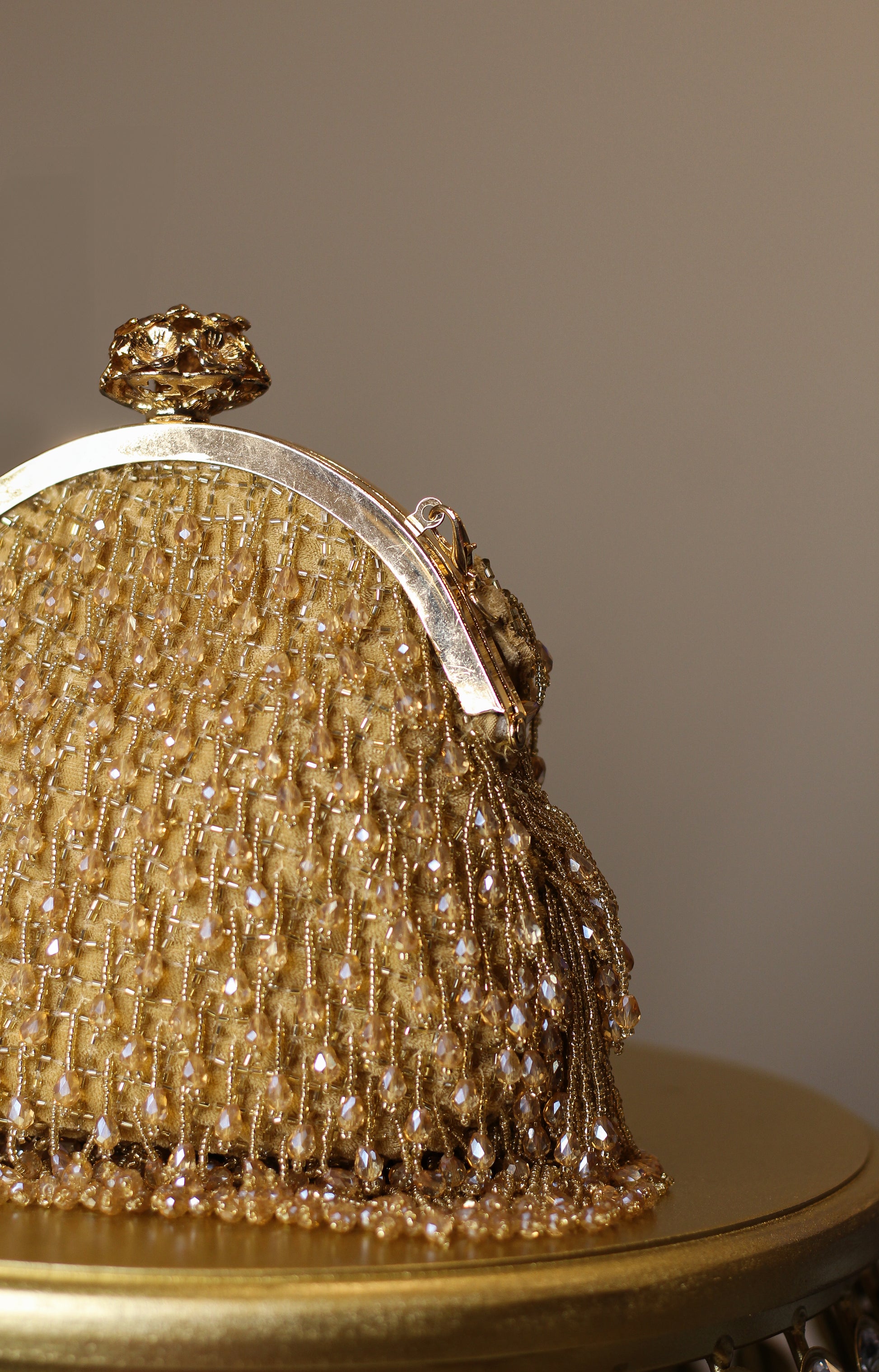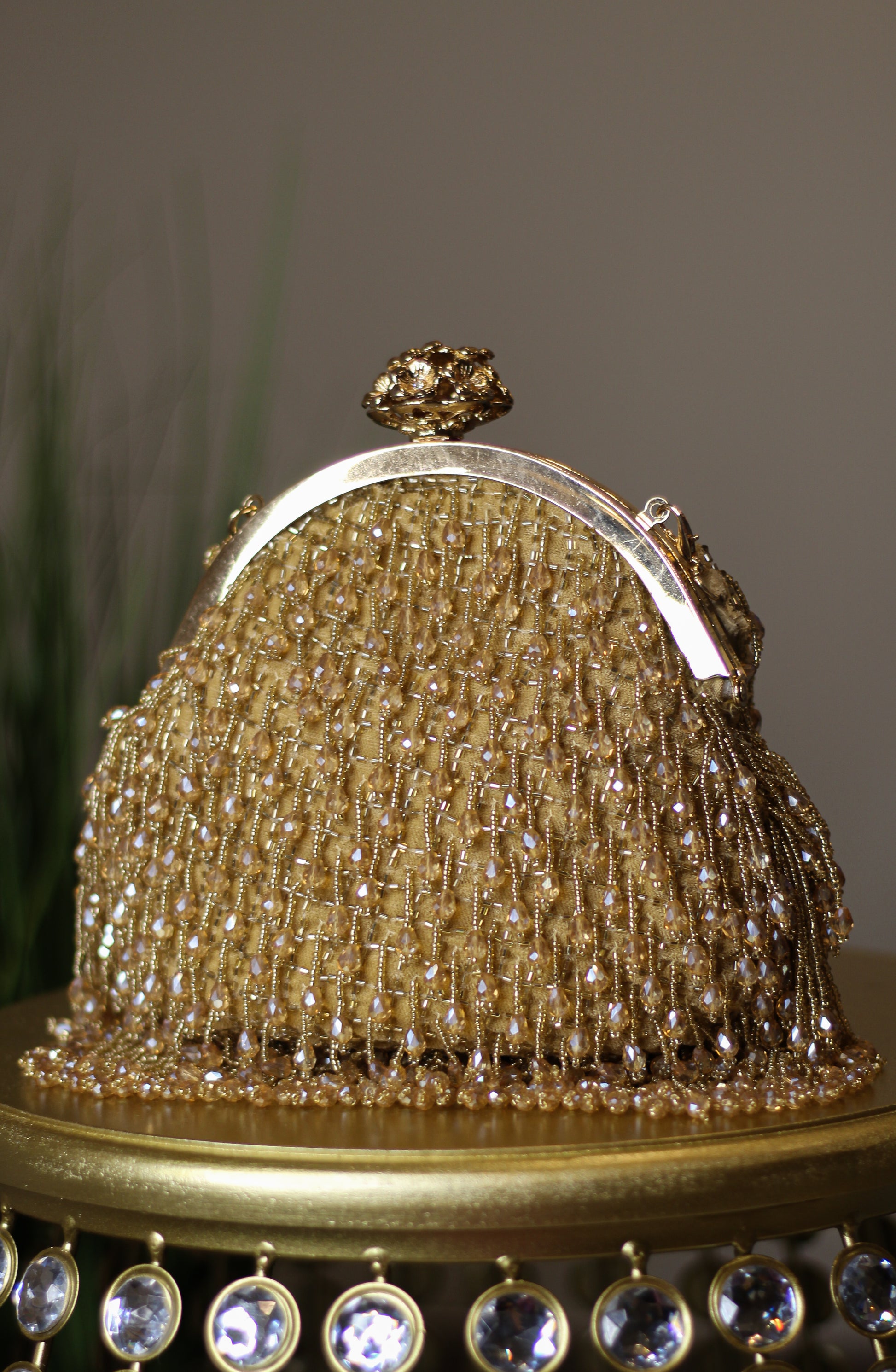 Introducing SOBIA, the crystal detailed half frame handbag that adds dazzle and statement to any outfit. Made with premium quality materials, the gold color enhances its luxurious appearance.